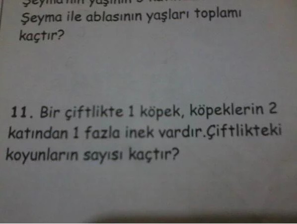 На одной ферме есть 1 собака и в два раза больше коров. А вот теперь быстренько угадай-ка, дружок, сколько на ферме баранов?