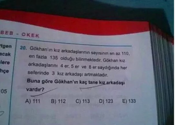 Известно, что у Гёкана подружек не менее 110 и не больше 135 штук. Если подсчитать всех Гёкановских девчонок, поделив число на 4, на 5, на 8, то каждый раз остаётся 3 лишних. Сколько у него девчонок?