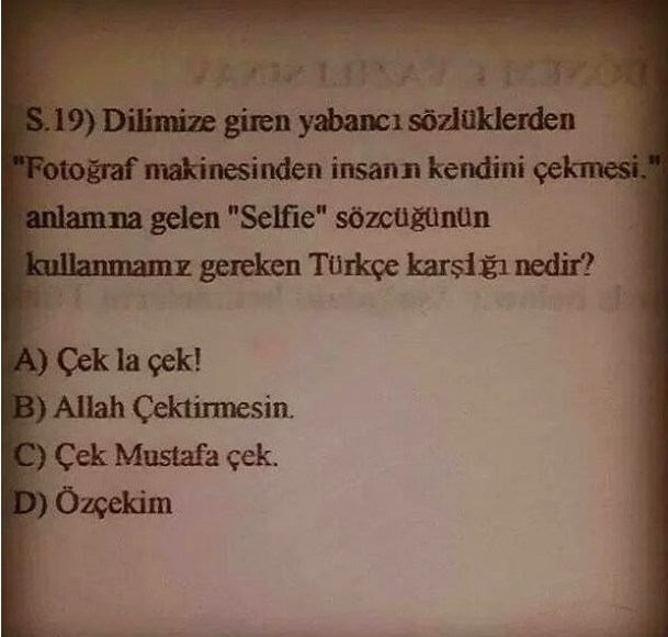 Какое выражение в турецком языке означает “Selfie” и которое используется для обозначения следующего действия: запечатлеть свой тэйбл посредством фотоаппарата?