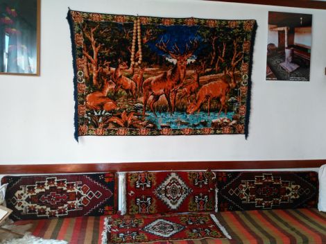 Плюшевый ковёр с оленями на стене обязательный атрибут благополучия, в то же время особый стиль дизайнерского решения, который имел нагрузку утолить печаль по природным просторам и был ностальгическим напоминанием о родных пенатах.