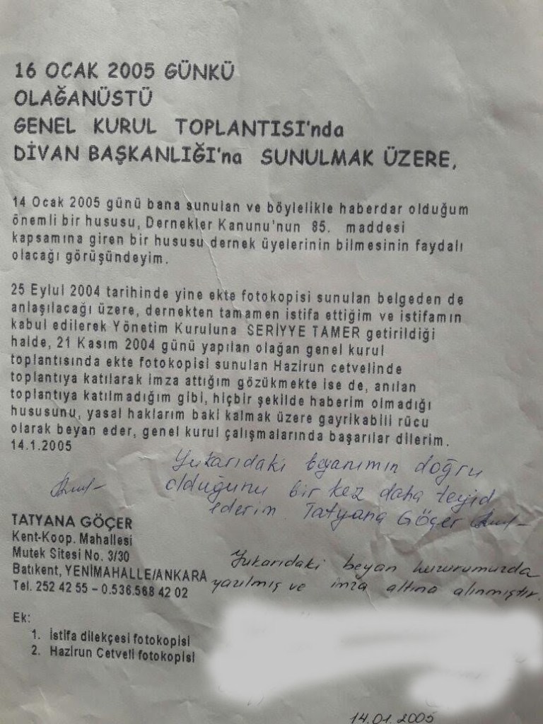 Документ общего собрания RUS KÜLTÜR VE DAYANIŞMA DERNEĞİ, где стоит якобы моя подпись.